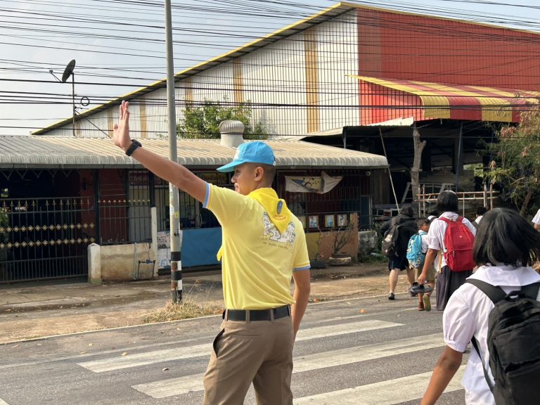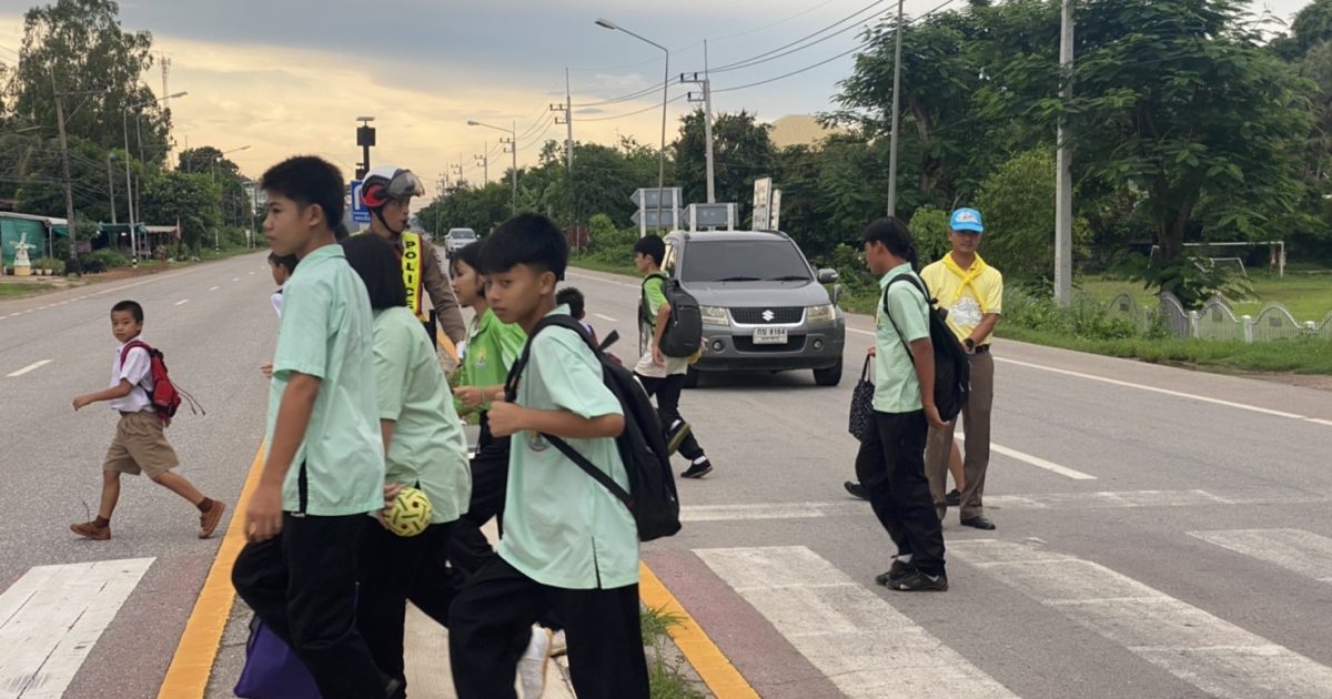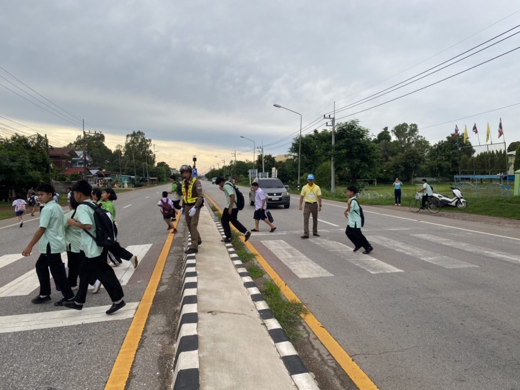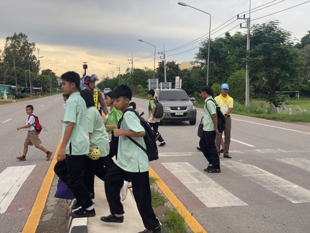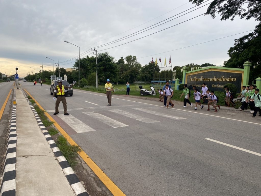 กานดำเนินกิจกรรมจิตอาสาพัฒนาจราจร (พาน้องข้ามถนน)