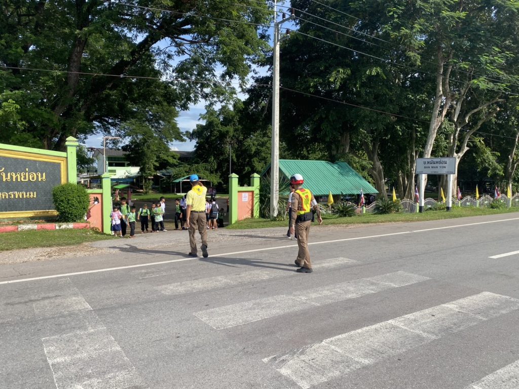โดยการอำนวยการของ พ.ต.อ.สมภพ แก้วรุณคำ ผกก.สภ.หลักศิลา มอบหมายให้ ร.ต.อ.ถิรณัฎฐ์ แก่นจันทร์ รอง สวป.สภ.หลักศิลา ข้าราชการตำรวจ Local Cat พร้อมด้วยข้าราชการตำรวจจิตอาสาและชุดจราจร สภ.หลักศิลา รวม 3 นาย ทำกิจกรรมจิตอาสาพัฒนาจราจร (พาน้องข้ามถนน) และอำนวยความสะดวกด้านการจราจรให้แก่นักเรียนหลังเลิกเรียน ณ โรงเรียนบ้านแสนพันหมันหย่อน ต.แสนพัน อ.ธาตุพนม จ.นครพนม
