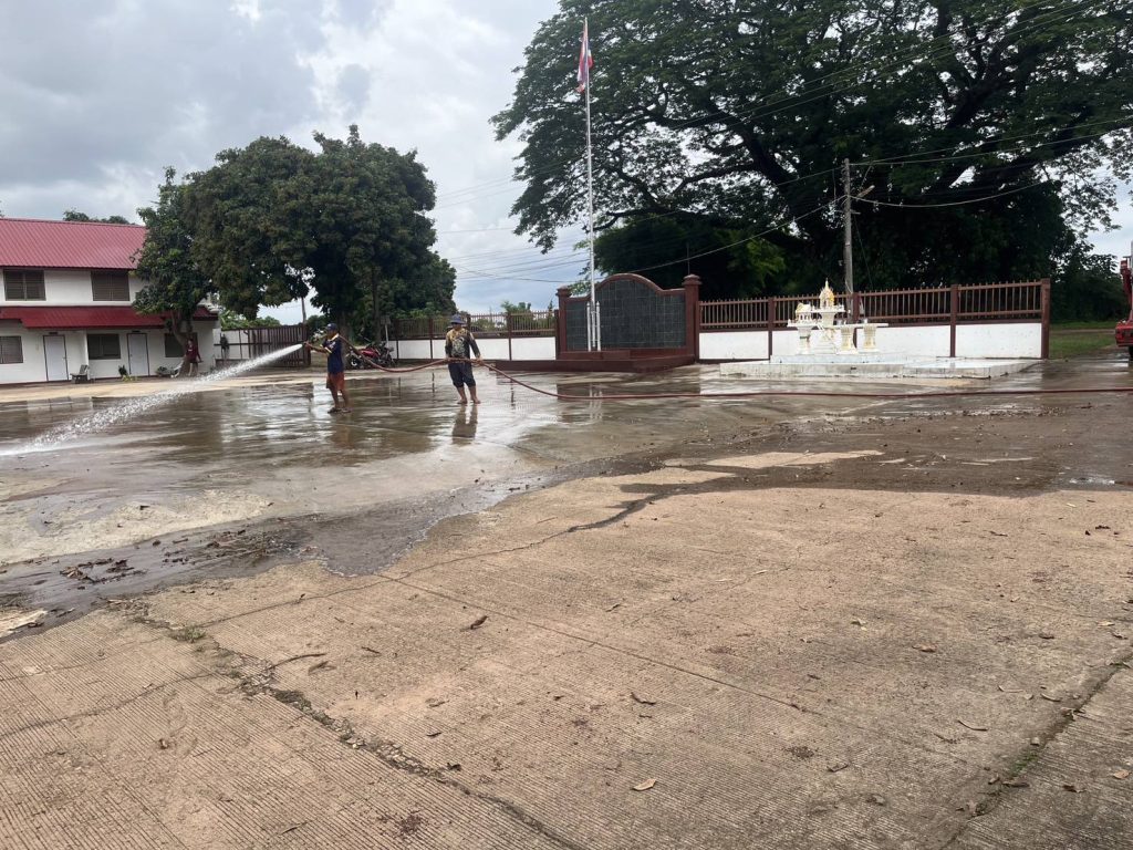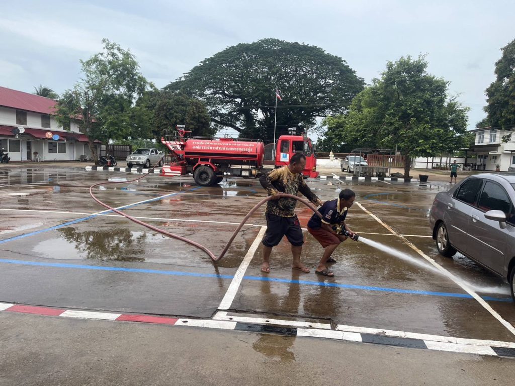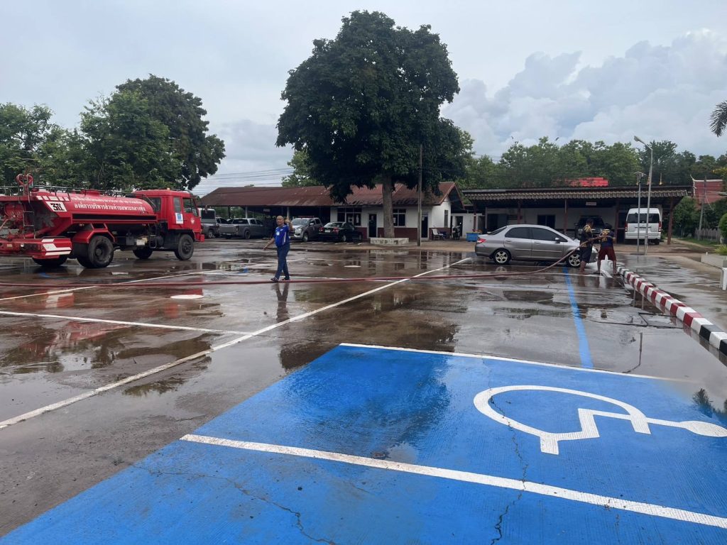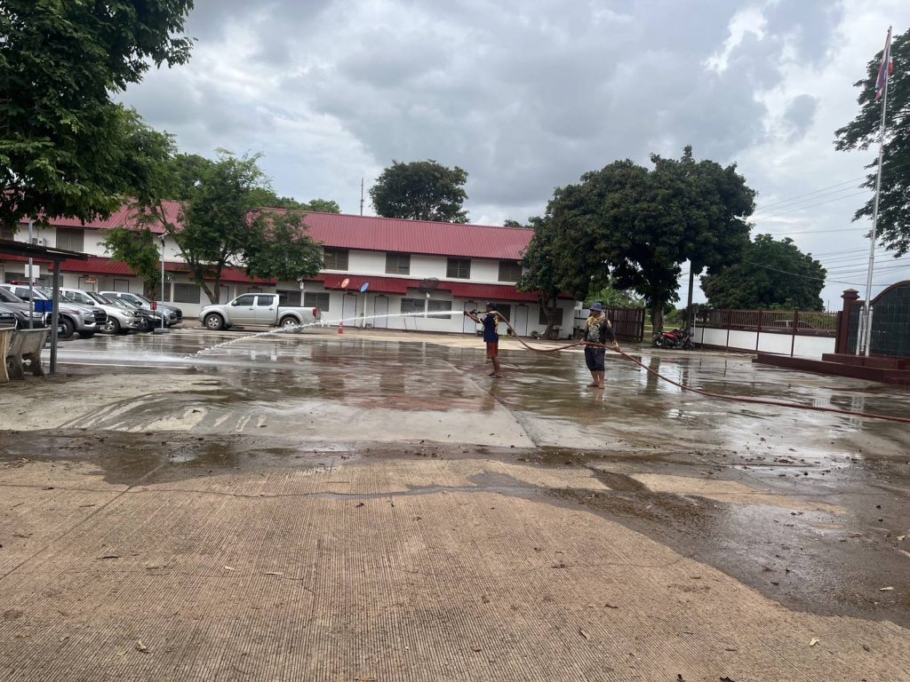 สถานีตำรวจภูธรหลักศิลา ขอขอบพระคุณท่านสวาท ลำทอง นายกองค์การบริหารส่วนตำบลพระกลางทุ่ง ที่ได้ให้การสนับสนุนเจ้าหน้าที่ อุปกรณ์ และรถฉีดน้ำ ในการทำความสะอาดบริเวณโดยรอบอาคารที่ทำการและบ้านพักเรือนแถว สภ.หลักศิลา ตามโครงการประกวดบ้านพักข้าราชการตำรวจ ของตำรวจภูธรจังหวัดนครพนม ประจำปี 2568