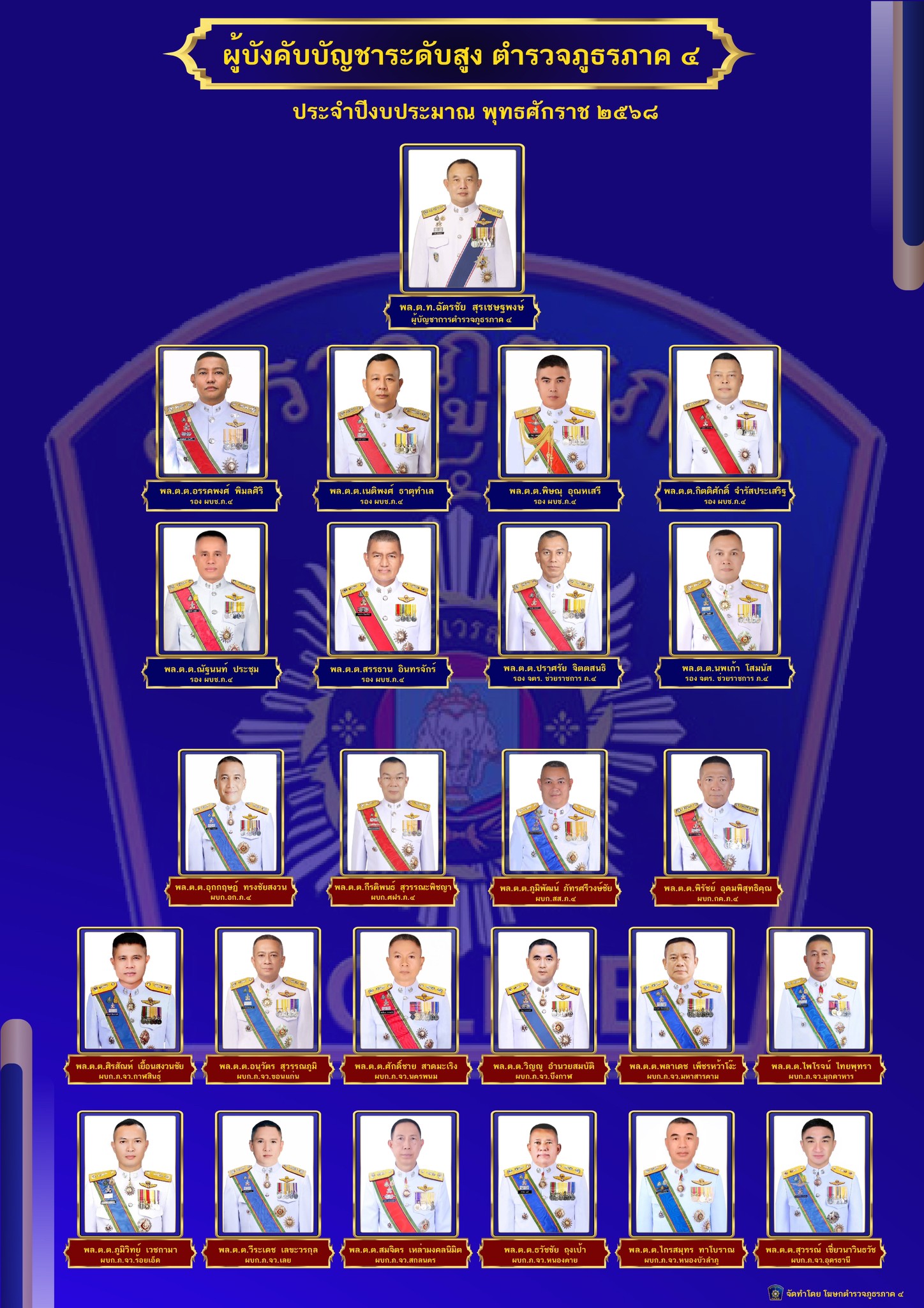 ข้อมูลผู้บังคับบัญชา ตำรวจภูธรภาค 4 ประจำปี 2568
