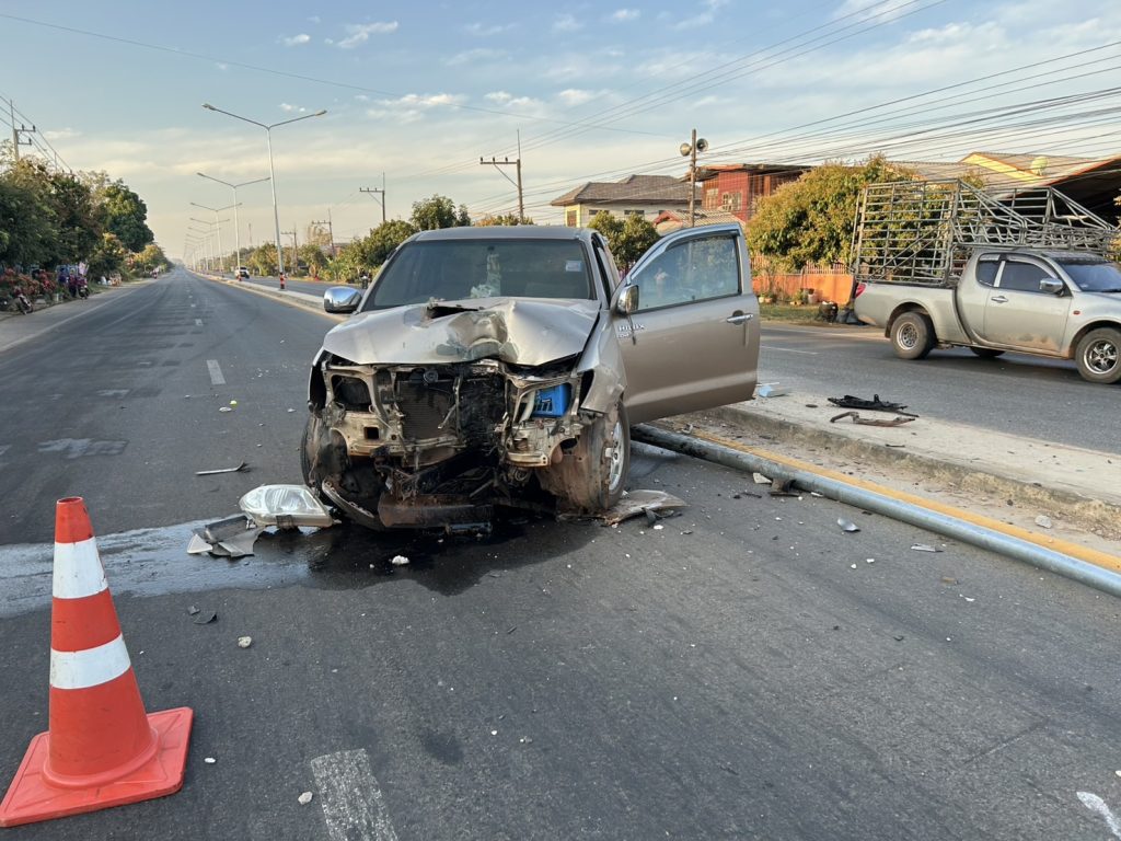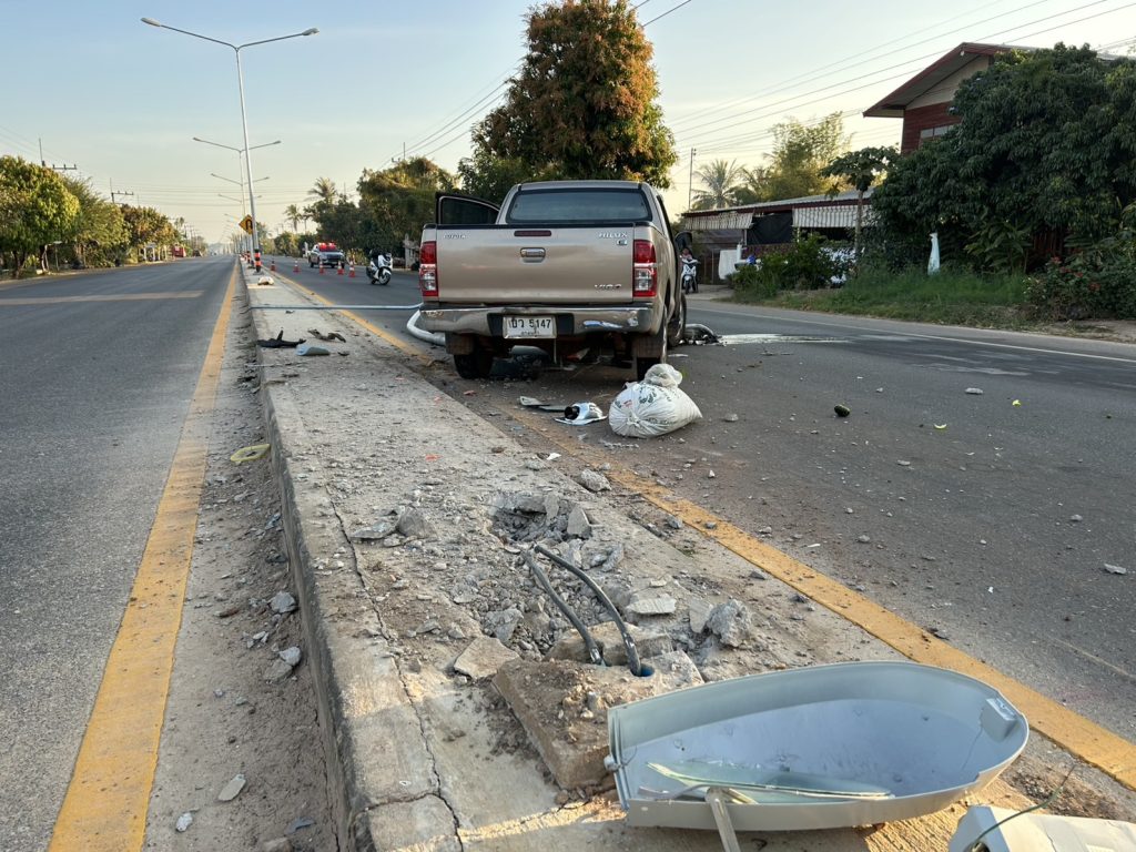 วันที่ 11 กุมภาพันธ์ 2568 เวลาประมาณ 06.35 น. ได้รับแจ้งเหตุอุบัติเหตุ กระบะชนเสาไฟฟ้า ที่เกิดเหตุ บริเวณ เลยตลาดแสนพันมาทางนครพนมประมาณ 2 กม. ต.แสนพัน อ.ธาตุพนม จ.นครพนม ร.ต.ต.มิตรฉา สำราญวงษ์ ร้อยเวร20 สายตรวจและชุดจราจร สภ.หลักศิลา ลงพื้นที่ตรวจสอบ ได้อำนวยความสะดวกด้านการจราจร และเคลียร์พื้นที่ เบื้องต้นพบรถกระบะพุ่งชนเสาไฟเกาะกลางถนน ทรัพย์สินของทางราชการได้รับความเสียหาย เบื้องต้นมีผู้บาดเจ็บสองราย กู้ชีพนำตัวส่งโรงพยาบาลเป็นที่เรียบร้อย ร้อยเวรสอบสวนดำเนินการในส่วนที่เกี่ยวข้องต่อไป