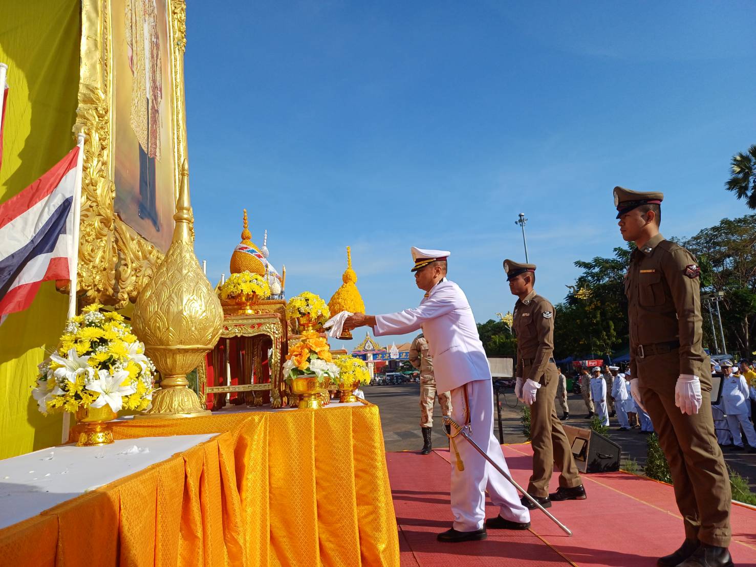 วันที่ 5 ธันวาคม 2567 เวลา 08.00 น. พ.ต.อ.คณพศ พนมชัย ผกก.สภ.หลักศิลา ร่วมพิธีวางพานพุ่มดอกไม้ถวายรา