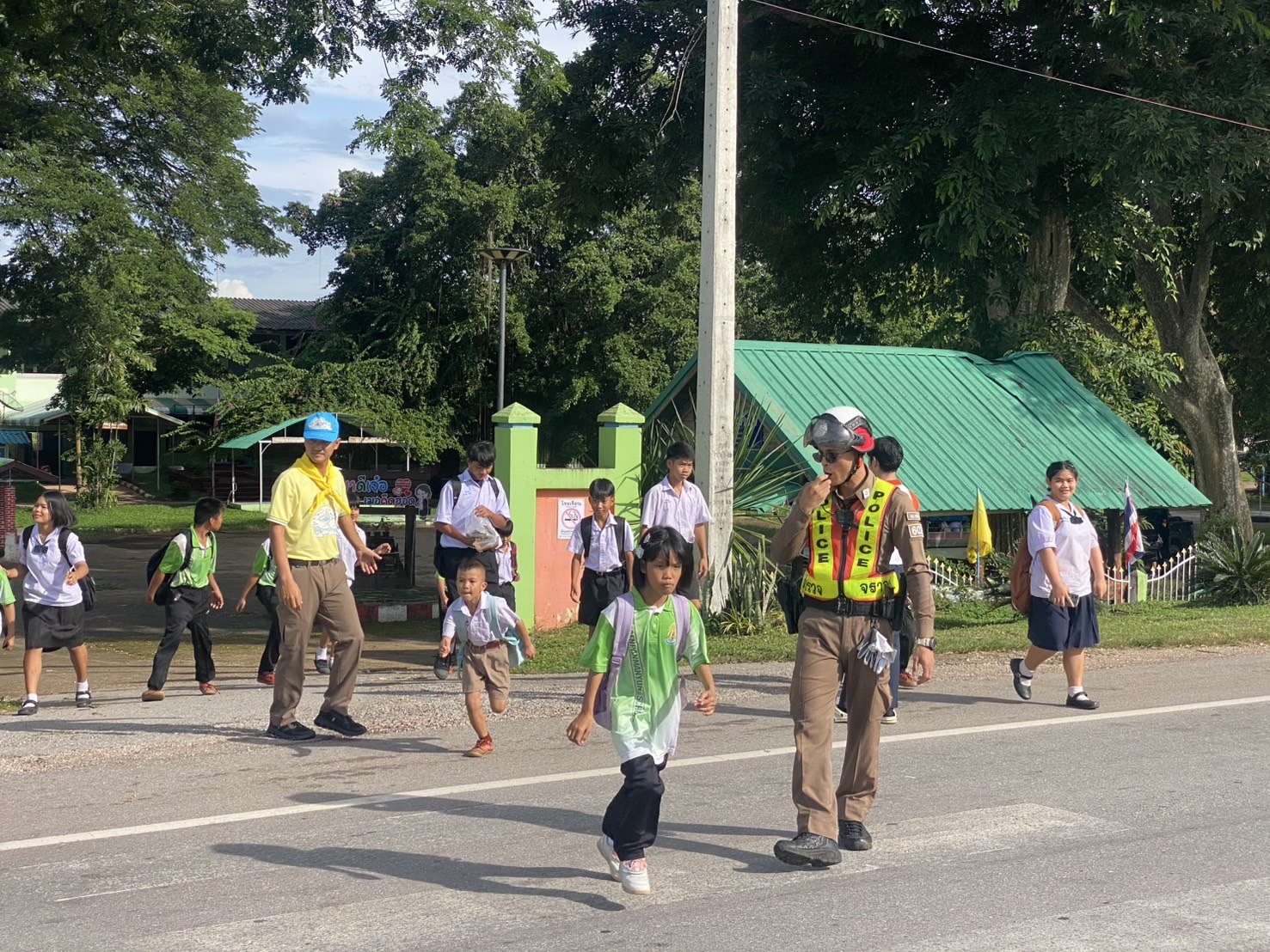 ชุดจิตอาสา จราจร ทำกิจกรรมจิตอาสาพัฒนาจราจร (พาน้องข้ามถนน)