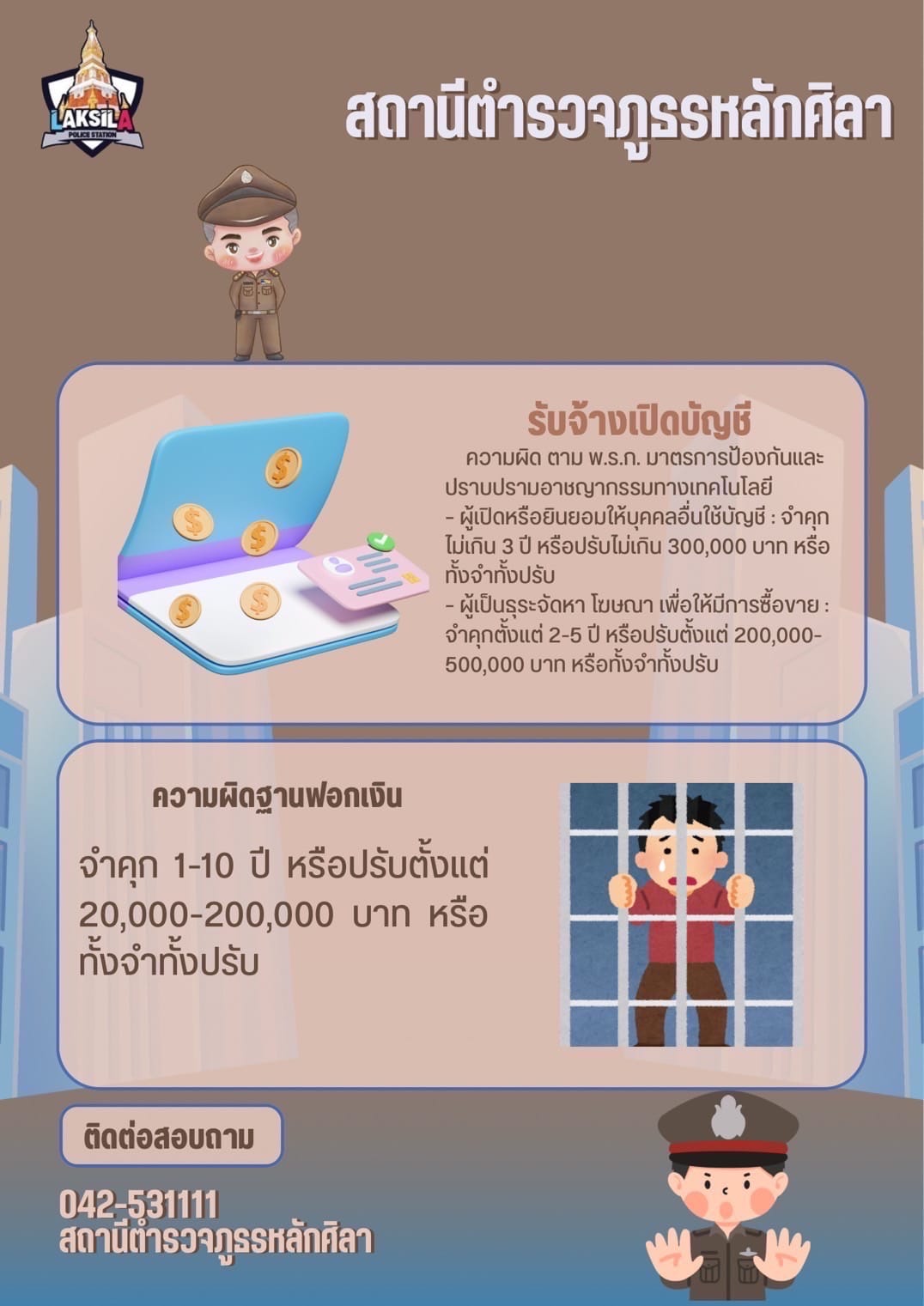 ด้วยความปรารถนาดีจาก สภ.หลักศิลา ว่าด้วยเรื่อง “การรับจ้างเปิดบัญชีม้า” ในช่วงเวลาที่ผ่า